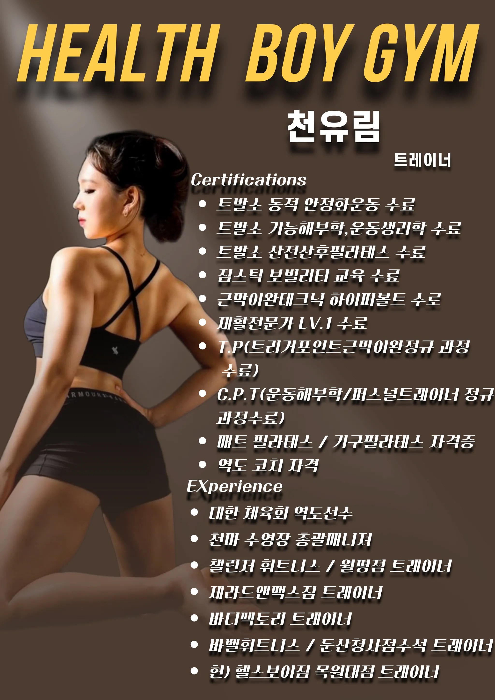 운동습관 만들어드릴 천유림PT팀장입니다^^